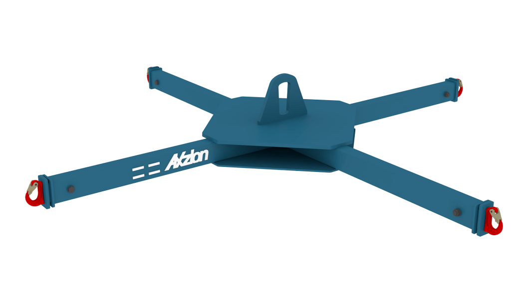 Die Kreuztraverse von Axzion ist eine robuste Lösung für das sichere Heben und Transportieren räumlicher Lasten. Mit vier im 90°-Winkel angeordneten Kranarmen bietet sie eine stabile Lastaufnahme und eignet sich besonders für komplexe Geometrien.